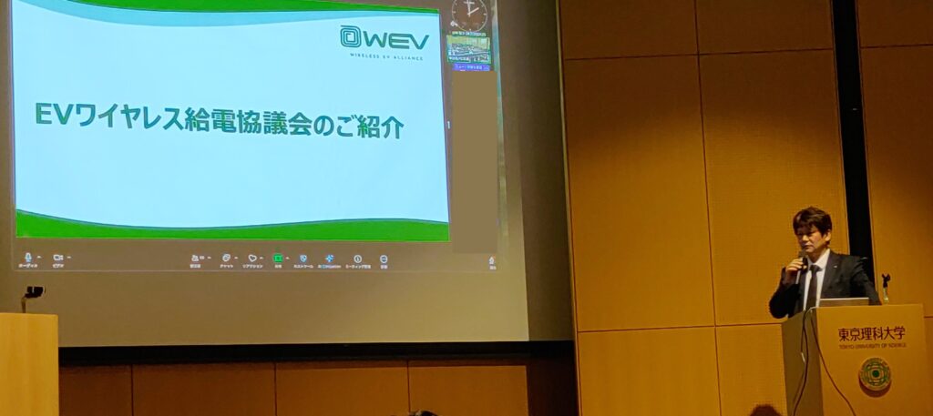 2025年10月25日土曜日、eモビリティシンポジウム(主催:東京理科大学 横断型コース エネルギー・環境コース)におきまして、「EV ワイヤレス給電協議会の活動について」と題して鶴田 義範 氏(EV ワイヤレス給電協議会 事務局長)が登壇しました。
